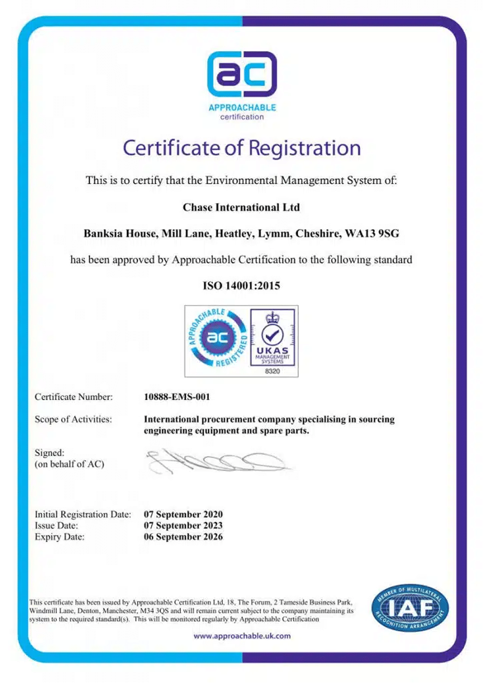 CHASE International is certified ISO 9001:2015 and has been for many years, demonstrating our commitment to high quality procedures as well as outstanding, friendly service.