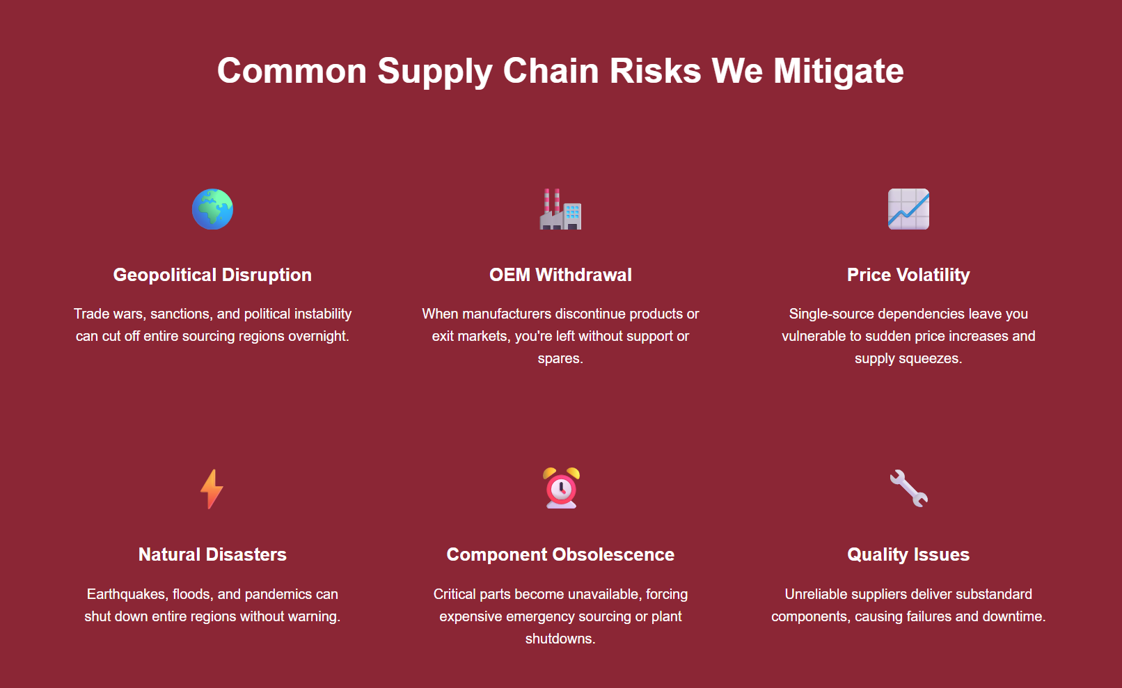 In today’s volatile global market, supply chain resilience isn’t optional – it’s essential. With 40+ years of experience and presence across 5 continents, we don’t just source components; we build comprehensive risk mitigation strategies.